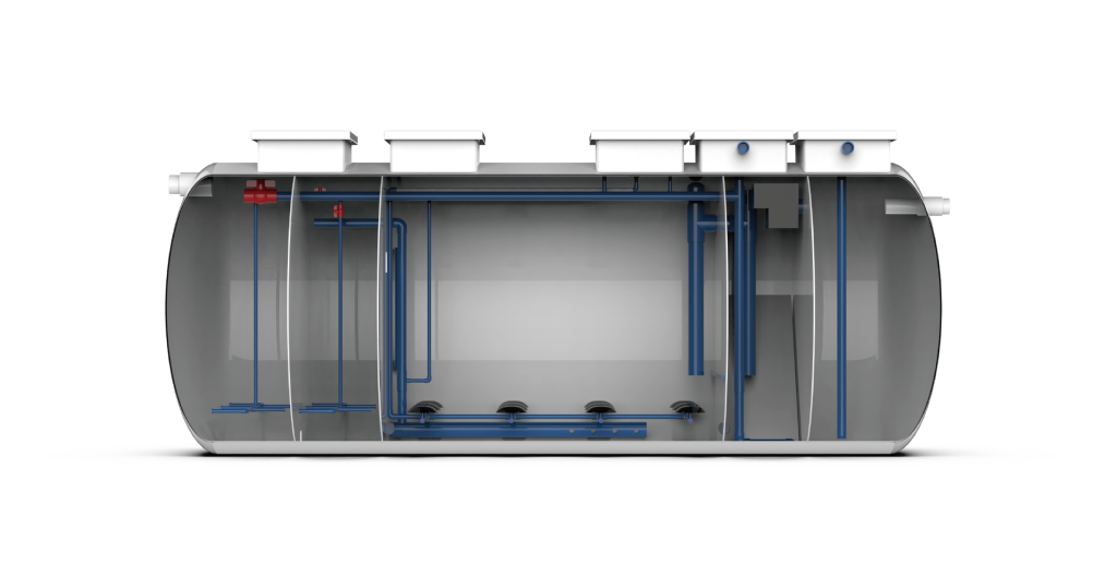 该卧式水箱系统专为工业或生活污水分散处理而设计,每天可处理数十吨污水,处理过程采用连续封闭式流程。污水首先进入初级沉淀和厌氧消化区,然后流经扩展型好氧生物反应器,微生物在此分解有机物和营养物质。经过水箱内的二次澄清后,处理后的水进行最终消毒,始终符合排放或再利用标准。全自动、节省空间的卧式设计确保了可靠的大容量运行,同时最大限度地减少了占地面积和维护工作。