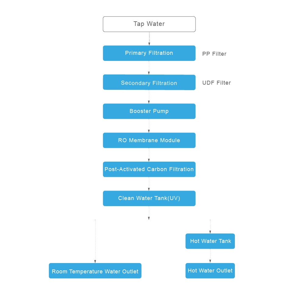 这款立式饮水机采用双级过滤系统,每级过滤的净化程度各不相同。此外,它还配备了反渗透膜组件,与过滤系统协同工作,逐层去除杂质。这一过程能有效将自来水转化为安全、即饮的饮用水。该设备可按需提供热水、冷水或常温水。此外,它还配备了内置广告屏幕,方便您根据需要显示宣传内容或自定义信息。